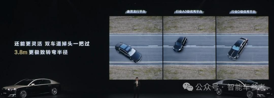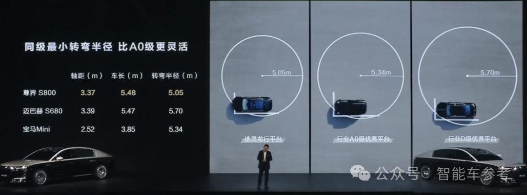 尊界S800还搭载了后轮转向,车长近5.5米的大车转弯半径,比宝马Mini还小。