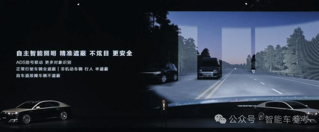 智驾算法在夜间还会识别路上不同的交通参与者,自主调整大灯,避免晃到对面司机的眼。