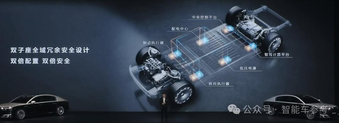 尊界S800搭载全域冗余安全设计,计算平台和控制平台等等都做了备份。