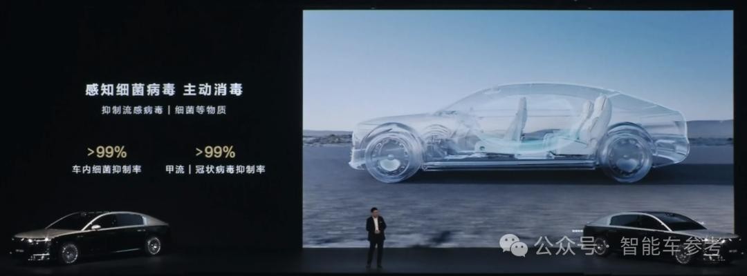 尊界升级至ALPS 2.0, 不光能净化烟味儿,连车内细菌病毒也能感知到,主动消毒,抑制甲流和细菌。