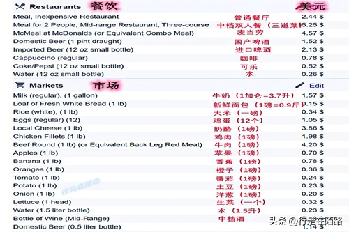 以指导价来看,只有水果和酒类等少部分商品的价格比中国略高,其余多数都比中国三四线城市还要低,例如普通餐厅人均17元人民币、1升牛奶3元、12个鸡蛋7.2元、一斤牛肉33元等等,1升5元的汽油不算很便宜,但出租车起步价是真的低到谷底,3英里内(接近5公里)只收1.2元,超出后每英里(1.6公里)3.5元。