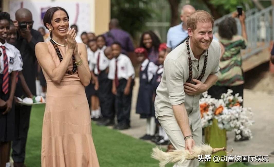 在他们为期三天的尼日利亚之行的首场活动中,梅根身着一袭华丽的腮红露背连衣裙,腰间系着一条金色的腰链,搭配着个性十足的耳环,整个人焕发出迷人的光彩。