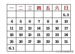 用周期问题思路来解答,每星期有7天,5月3日是星期日,在它之后的第7天还是星期日。我们可以以星期为一个循环周期,按这个周期要知道6月1日是周期几,就要先求出6月1日是5月3日后的第几天。首先我们知道5月份有31天,