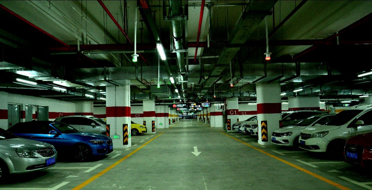 玻璃幕墙在各种灯光的照射下,反射出一种别样的美