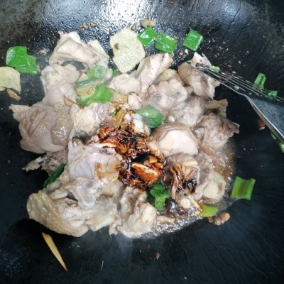 7、翻炒一会儿加酱油,生抽上色