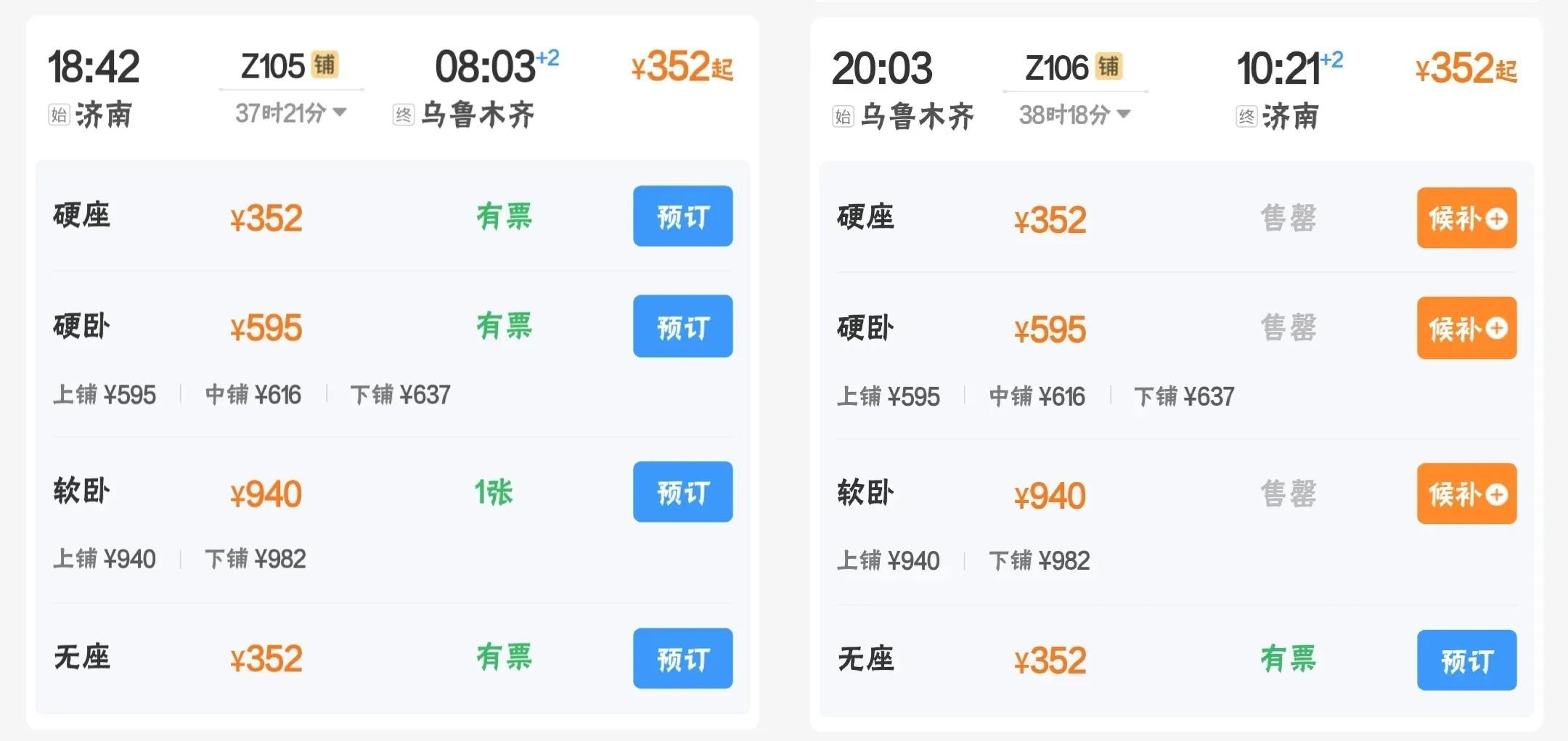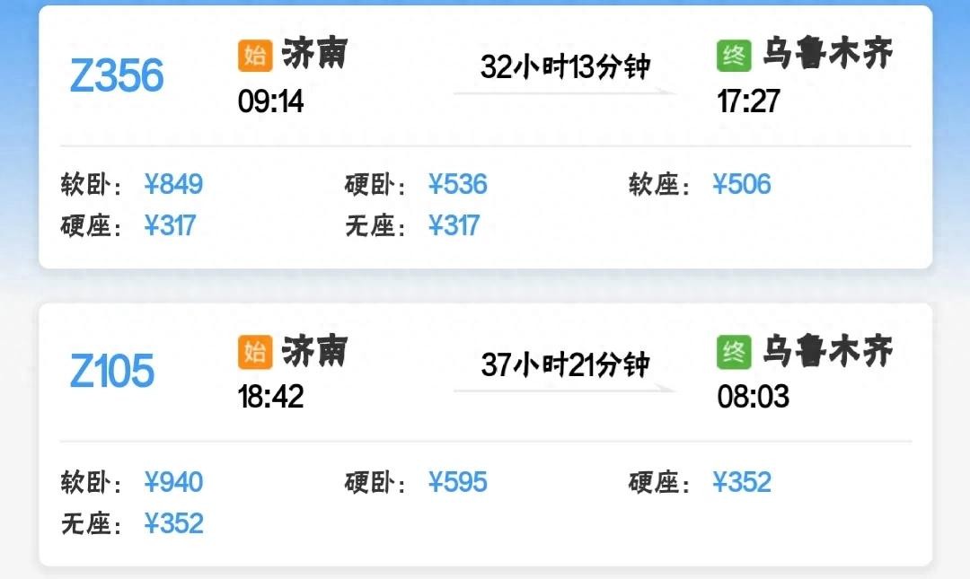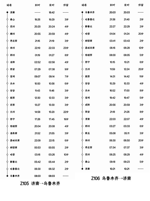 济南到乌鲁木齐两趟列车