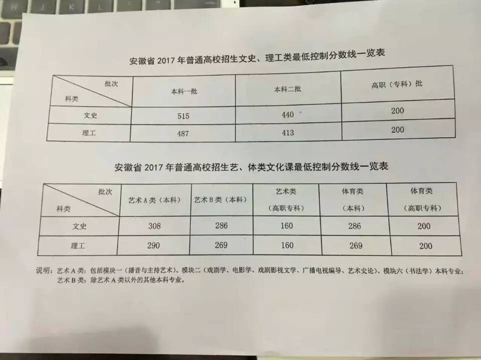 安徽省考试院刚刚发布2017年普通高校招生录取各批次分数线——