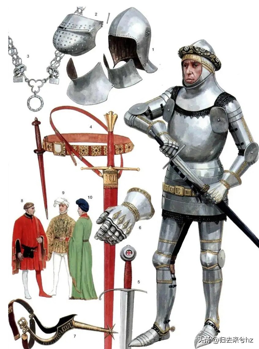 ▲中世纪骑士的单兵装备