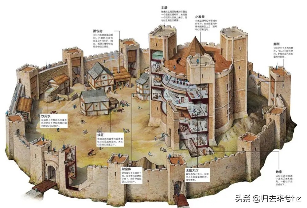 ▲中世纪城堡剖面示意