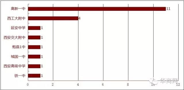 十年里在21名高考状元中,西安高新一中出了11个,西工大附中出了4个,另有六所学校(延安中学、交大附中、勉县一中、城固一中、西安高级中学、铁一中)各出了1个。