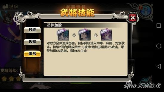天赋技:怨神邪气,战斗时增加自身暴击率,敌人中如果有奥丁的存在,则额外增加攻击力。