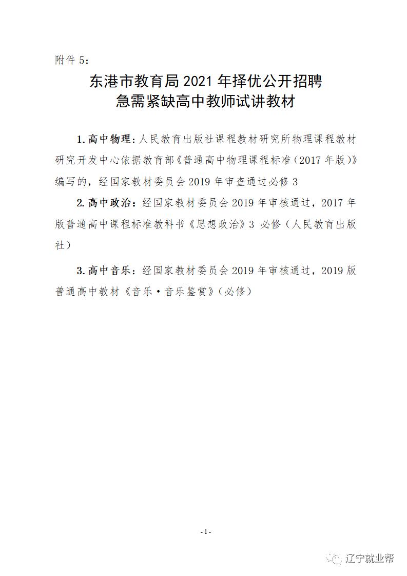 5.东港市教育局2021年择优公开招聘急需紧缺高中教师试讲教材