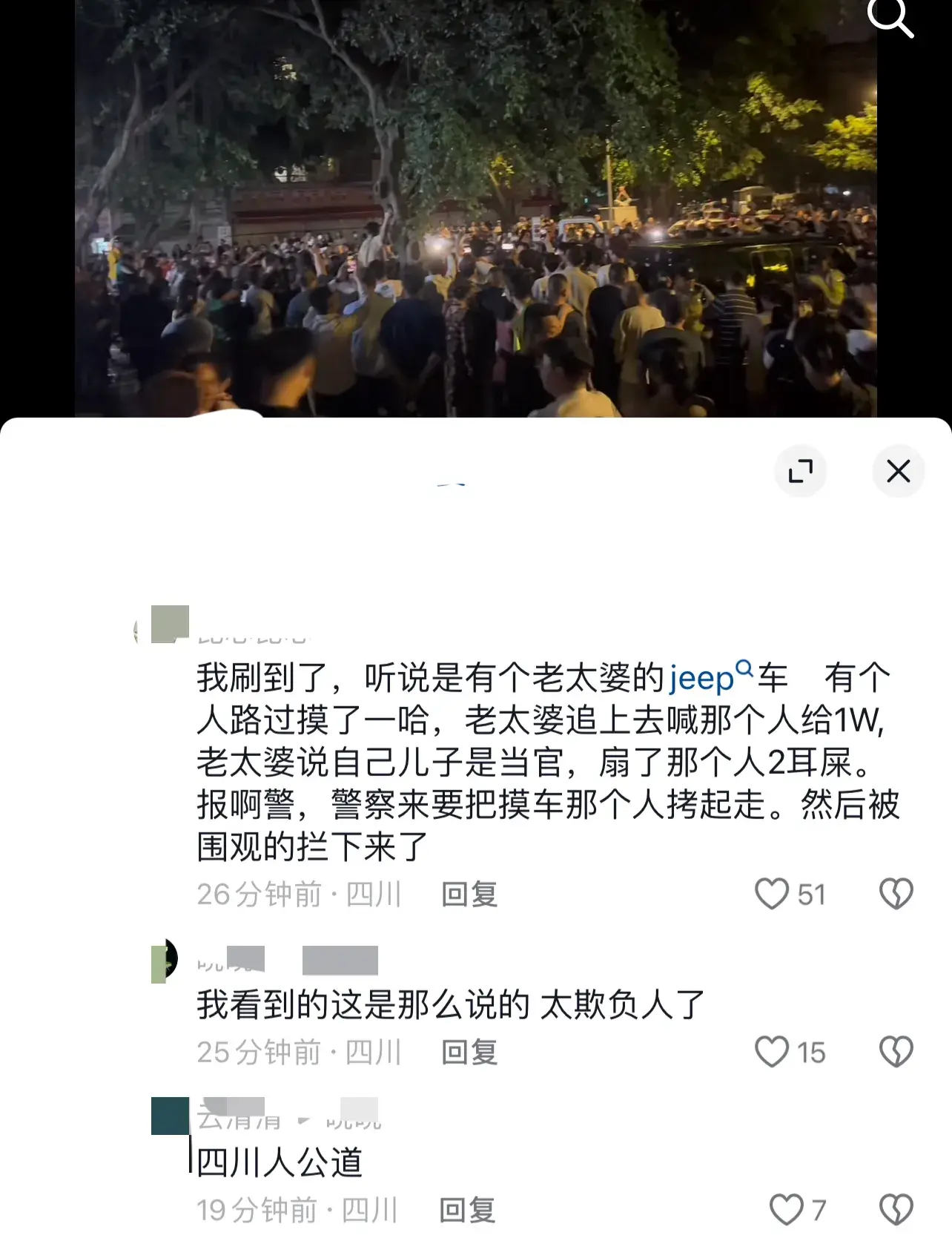 但就一个普通的纠纷,怎么就能引发民愤呢?还需要那么多人守着车子。这是保护现场还有另有目的呢?