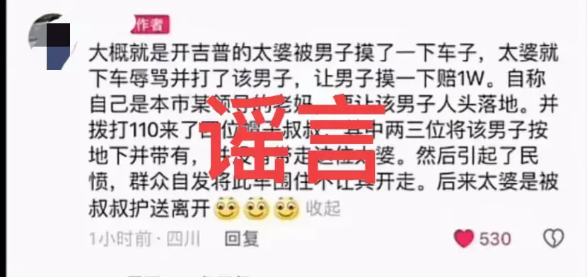 果然,当地事还是得当度人才清楚,大量网友发声,称老太太在打摸车男子的时候称“自己儿子是市长”,然而这一切均被证实属于谣言。