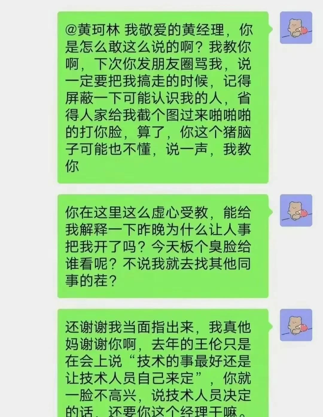 在这起事件中,同事的煽风点火也起到了推波助澜的作用。一些与龙哥关系不佳的同事趁机在群聊中发表嘲讽和攻击性的言论,加剧了龙哥的情绪失控。这些同事的行为不仅违背了职场中应有的相互尊重和合作精神,也体现了他们自身情商和沟通技巧的欠缺。