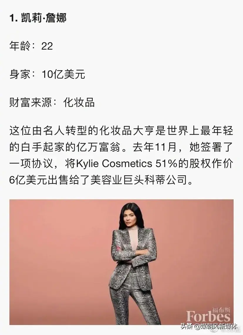 今日,福布斯揭晓了2020年全球最年轻10大亿万富翁,全球最年轻亿万富翁仅22岁。从化妆品巨头凯莉·詹娜,到香港房地产继承人郭基浩,这10位富翁身家共159亿美元。22岁的凯莉·詹娜以10亿美元身家位列最年轻10亿富翁。