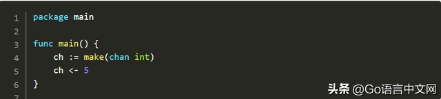 在上述程序中,我们创建了一个信道 ch,接着在下一行 ch <- 5,我们把 5 发送到这个信道。对于本程序,没有其他的协程从 ch 接收数据。于是程序触发 panic,出现如下运行时错误。