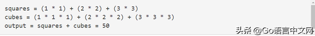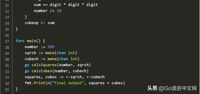 我们会这样去构建程序:在一个单独的 Go 协程计算平方和,而在另一个协程计算立方和,最后在 Go 主协程把平方和与立方和相加。