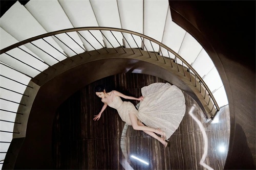 裙摆铺展开,像是贝壳又似展开的扇子。