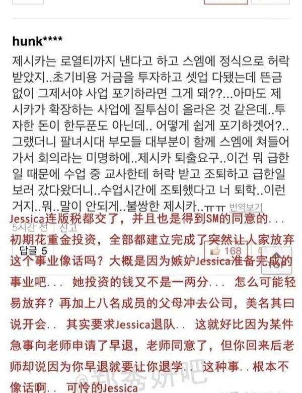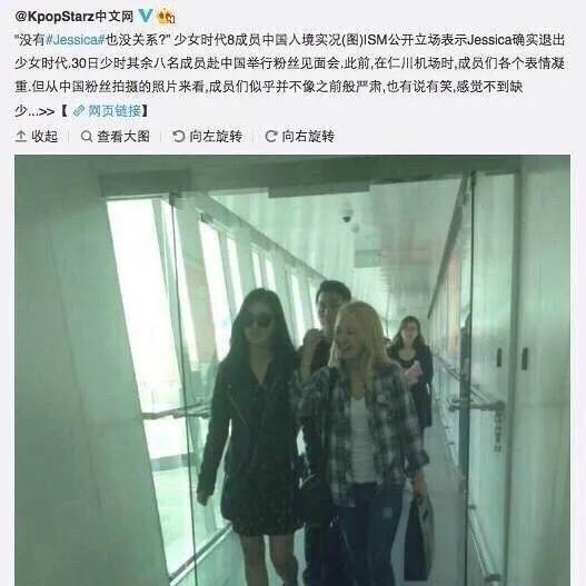 因当天有少时深圳粉丝见面会,这篇微博给所有人的第一反应就是Jessica在不知情的状况下在fan meeting前被sm公司和少时八名成员强迫退队。
