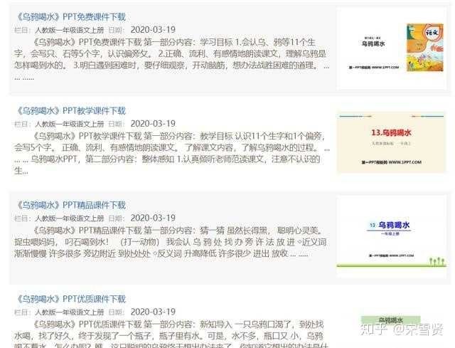 每一篇课文都有十几种PPT课件,可供随意下载,我随便打开了两个: