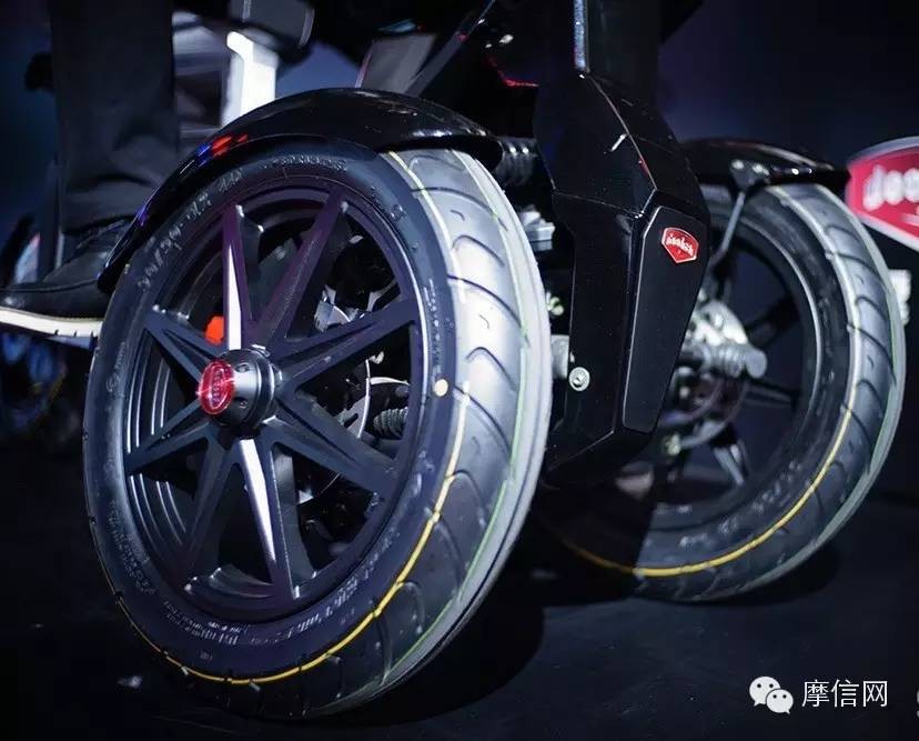 iTank究竟凭何售价7999元,让我们来看看产品吧?首先,iTank有别于我们看见的其他电动车,它采用了双前轮外形设计,以前这种设计只在摩托车和汽车行业见到,如比亚乔的MP3、雅马哈的MWT系列,丰田的i-Road,庞巴迪家族产品以及摩根的三轮汽车等等。将倒三轮设计应用于电动车,在行业实属罕有。