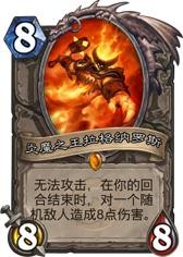 光明领主,拉格纳罗斯:8费 8/8。在你的回合结束,随机为一个受到伤害的友方角色恢复8点生命值。