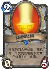 恩,单从卡牌能力上来讲,似乎还是一张可以用的卡牌,光明领主拉格纳罗斯的效果和光明之泉类似,但是光明领主拉格纳罗斯在回合结束就能触发第一次技能,光明之泉则只能等到自己下回合开始才行。