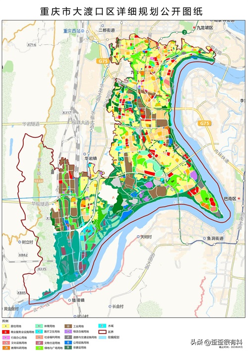 大渡口区土地规划图,面积102.83平方公里,城镇化率达到97.8%,目前大渡口重点发展这完美的湾区——长江文化艺术湾区。