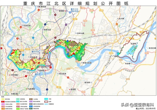 江北区土地规划图,面积220.8平方公里,城镇化率99.4%,其中著名的江北嘴划分到两江新区进行规划!