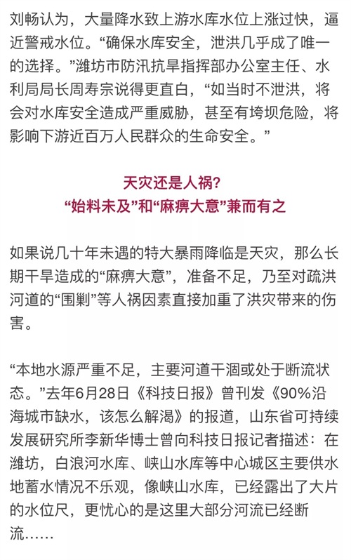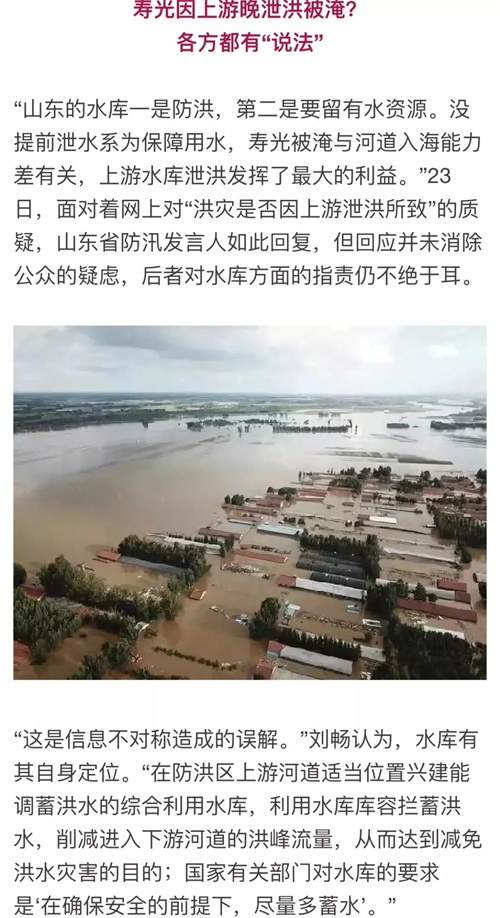 寿光因上游晚泄洪被淹?