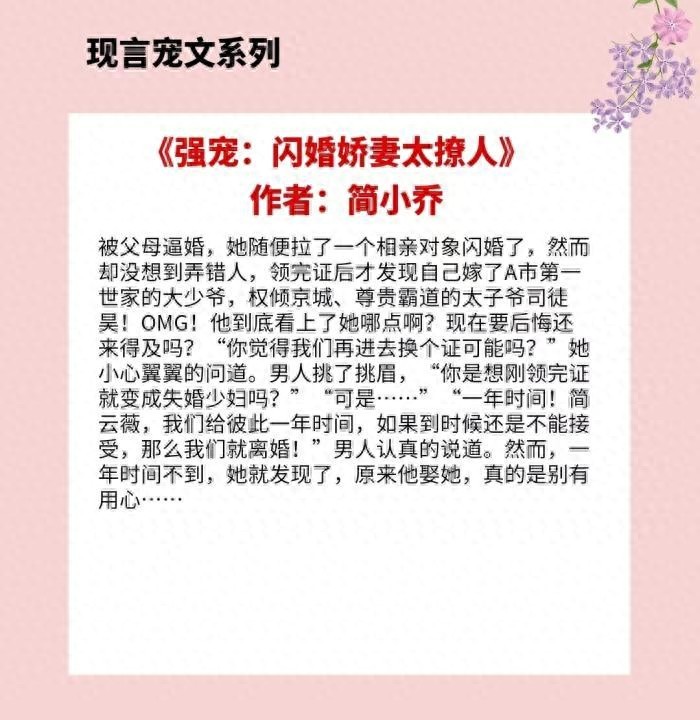 一、《强宠:闪婚娇妻太撩人》 作者:简小乔