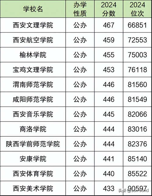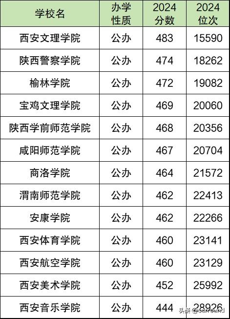 2024年陕西还分文科和理科,所以本文就分文理科整理出陕西公办二本大学在陕西的录取分数线。