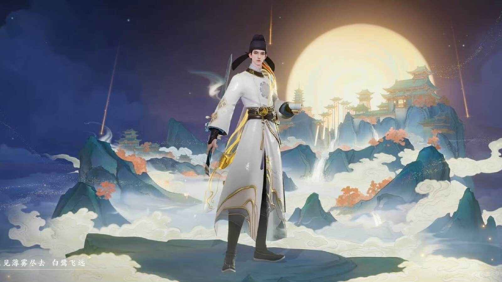 然后再来看一下这款皮肤的技能特效,技能特效主要也是以山水、白鹭以及化剑为主要元素。
