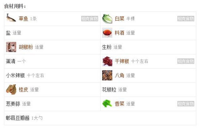 食材明细: