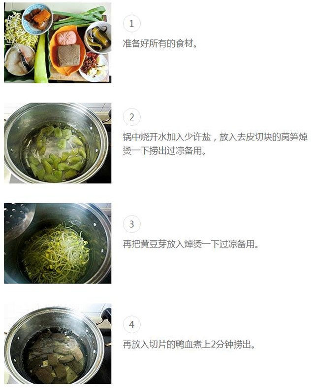 鸭血也要焯烫过之后再煮,可去除一些脏血和腥味。
