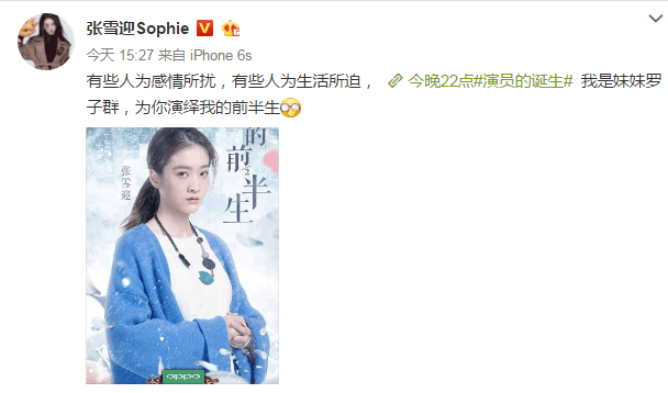 今天下午张雪迎在微博发表我是妹妹罗子群,今晚为你演绎《我的前半生》,这次张雪迎表演是很好看的就是不知道,她在演员的诞生节目表演《我的前半生》会不会出问题,毕竟袁立就是很好的列子,加上现在的张雪迎聪明在演员的诞生节目表演,应该很好过地,还有就是现在的电影和节目有很多,不过看来张雪迎表演好看点,期待演出。