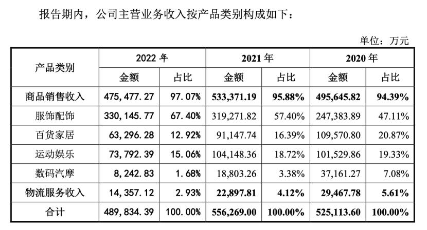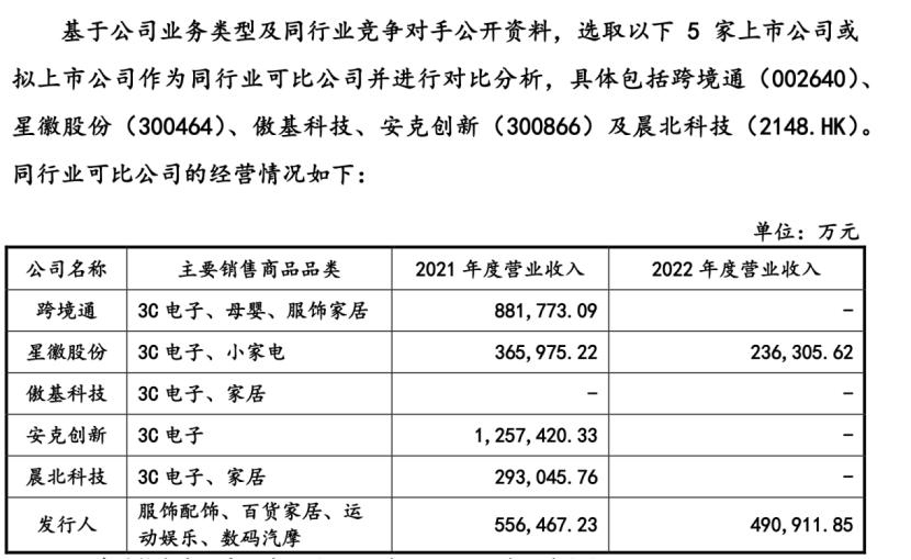 同已上市的跨境电商对比,赛维时代是少有的以服装销售为主导企业,2022 年贡献的收入超 30 亿元,占总营收的六成。其他企业更多以 3C 电子为主。