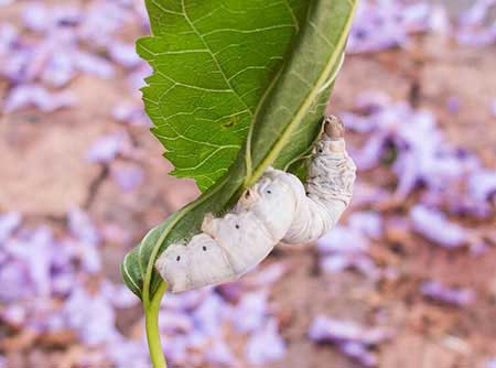 2、长大:蚕以桑叶为生,不断吃桑叶后身体变成白色,一段时间后她便开始脱皮。蚕就眠时不吃不动,表面是睡眠,实际是脱掉旧皮,换上新皮以继续生长。蚕在整个饲养过程中要蜕皮4次,每次蜕皮的时候它不吃不动,这时尽量不要干扰它,也不要以为它生病了就把它丢掉。蚕每次眠期大概持续一天时间。