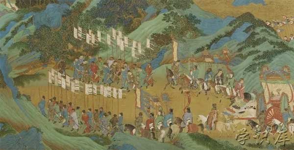 中乐酣”到“谨受命矣”的合四部分。先通过亡是公指出子虚、乌有二人之论不确,从而引出天子上林之事,既承接了《子虚赋》,又为下文作好铺垫;再通过亡是公的口吻,依次夸饰天子上林苑中的水势、水产、草木、走兽、台观、树木、猿类之胜,极言上林苑奇景胜状之巨丽;接着由前面的状物转入渲染天子校猎的场面,先写天子检阅各部曲将帅的情形,再写天子射猎的非凡技艺,归来将猎物分给从人的情形,最后写天子猎余庆功,置酒张乐,美女云集,将奢乐的场面推向最高潮。