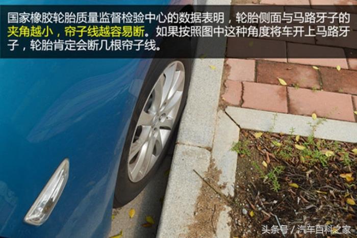 但很多时候并不是四个轮都上去,而是右侧两个轮上去,左侧两轮还在下面,这种情况,最好把轮胎的角度打的大一点,再加油上,减小轮胎侧壁与马路牙接触的面积。如果只打一点方向,也就是角度太小,上的时候轮胎侧壁会受到马路牙子的挤压或划伤,引起帘线断裂;或者磕碰到轮毂,这损失都是不小的。