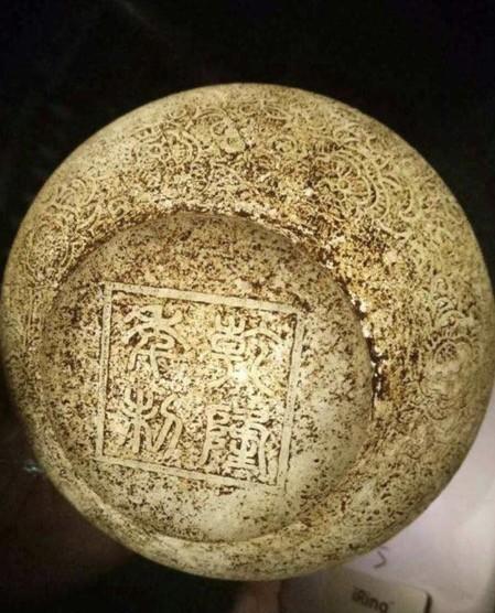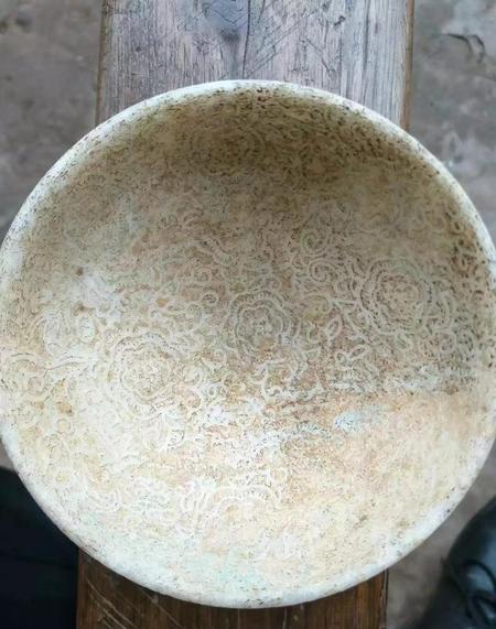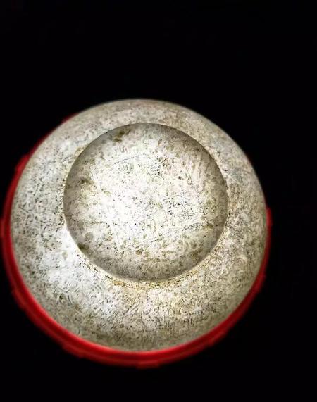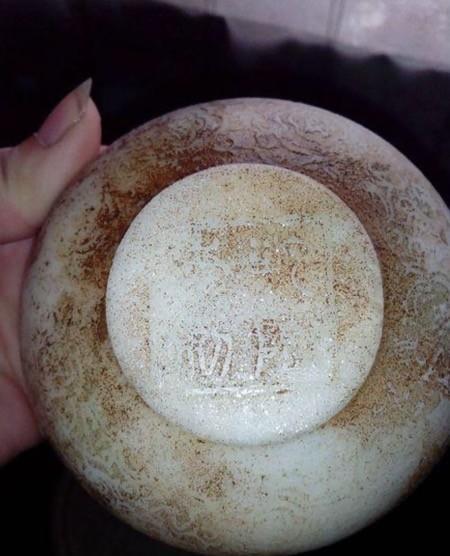 所谓的“乾隆孝粉玉碗”实际是使用高分子树脂压制而成,而且为了表现出玉碗的年代感,一般上面还会做旧处理。处理过的玉碗表面斑斑驳驳看上去很有沧桑感。因为制作工艺简单,材料成本低廉,文字内容辨识度高,所以“乾隆孝粉玉碗”被大量生产。对于骗子来说,正是非常适合的道具。