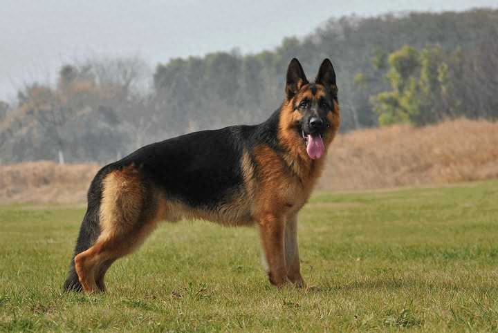 眼睛稍呈三角形,深陷,朝着耳朵的外耳根部向上倾斜。耳朵三角形,小而且牢固地竖立,但和头及身体大小相称。嘴唇紧而黑,鼻子为黑色。前胸发育良好。四肢骨料粗壮,强健有力,站立姿势好,后肢大腿肌肉丰满。