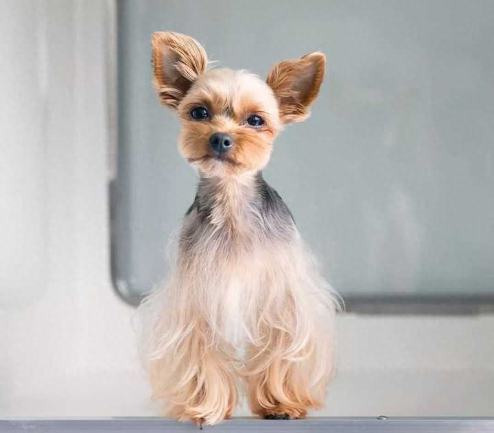 头部长,有足够的宽度,但不显得笨重。位置高且短的耳朵覆盖着浓密的长毛。水平的眼睛大且镇静。口鼻部呈正方形而不是圆形,鼻子黑色。宽深的胸,有宽大的空间。前肢完全垂直与地面,除了骹骨略微倾斜。