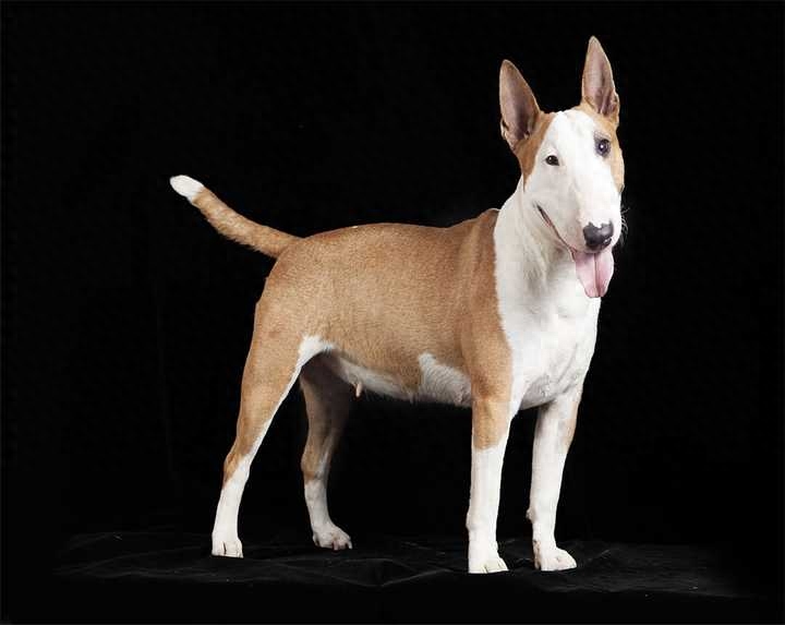 头部较长但不过分。V字性耳朵,且比例适中,中等厚度,起于颅骨折叠而下,垂于脸颊。眼睛又小又黑,带有敏锐的梗类特性。鼻子黑色,鼻孔大而宽。牙齿洁白坚硬,呈剪状咬合。颈部匀称而长度适中。胸部厚而宽度适中。背部短小,坚实而笔直。尾巴高翘,长度适中,垂直于地面竖起,尾巴竖立的越直越好。前后腿都笔直有力,脚部结合紧密,大小适中。带有厚的肉垫,走动时不会发出声音,脚趾呈弧形,不向里翻也不向外展。