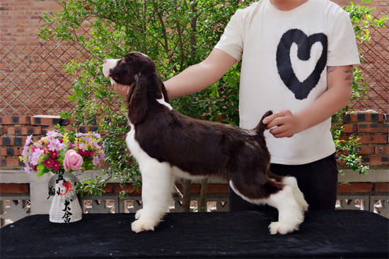 身体紧凑结实,断尾。波毛适中,四肢、耳、胸部带有饰毛。垂耳,表情轻松柔和稳健的身体和友好的摇尾表明它确实是古老猎犬家庭的一员。它的身体非常匀称,但又不过分,任何部分都很匀称。仪态高雅和显著,躯干深,腿部强壮而且肌肉发达,足够长的腿使它轻松自如。总的来说,英国史宾格犬应显示出力量、耐力持久和活泼。它应呈现出善跑并能持久的体态,在艰苦的狩猎条件下,它能保持持续工作。在最佳状态时,它富有时尚、匀称、平衡和热情的资质,而且它集美丽和实用为一体,是能区分猎物的地道猎犬。
