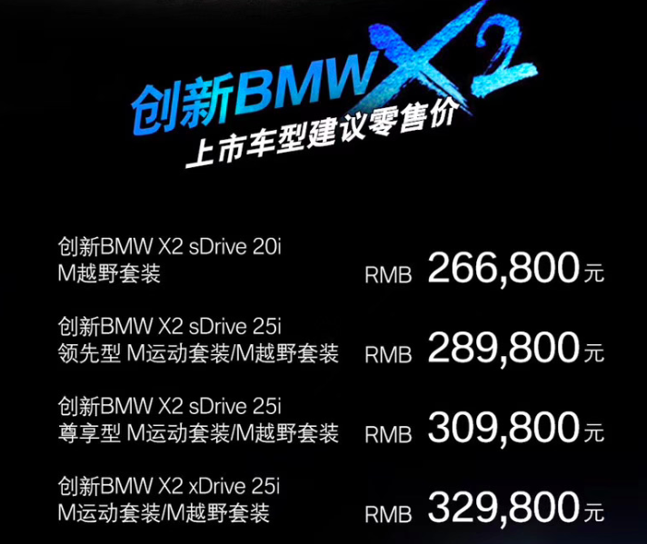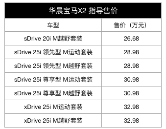 宝马X2定位是一款运动紧凑型SUV,和奔驰GLA定位相近。新车国产后售价来到26.68-32.98万元,比同门X1的27.88万低了1.2万,比GLA的26.48万起售价仅高出2千元。这里先聊到X2和X1的差异化定位,前者是运动紧凑型SUV,后者是大空间紧凑型SUV,X2对应GLA,X1对应Q3。