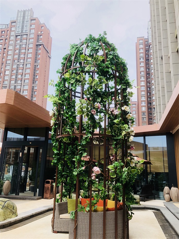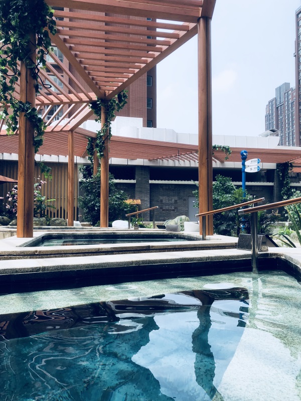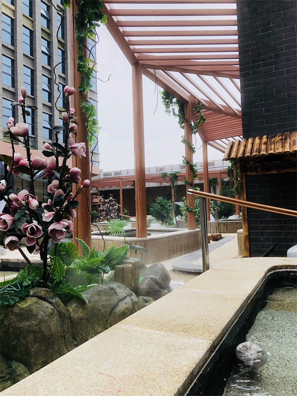 室外:温泉旁的花架休息区