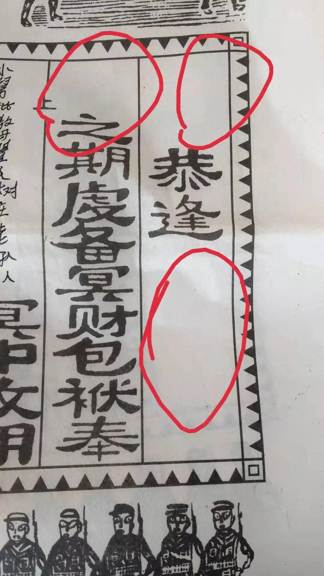 七月半填包,“恭逢”与“之期”之间填“秋祀”,若老人新故,要烧“三七包”、“七七包”、“百日包”时,分别填“三七、七七、百日”。