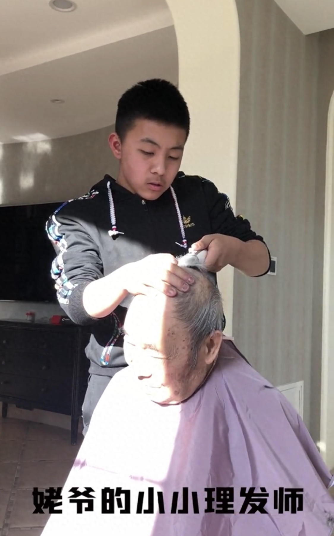 7月7日,邓亚萍罕见发布了一段和家人相处在一起的视频,视频中邓亚萍儿子正专心致志地给姥爷剃头,一前一后,一推一拉,手法显娴熟,窗外阳光缓缓打在两人身上,画面看上去十分温馨。